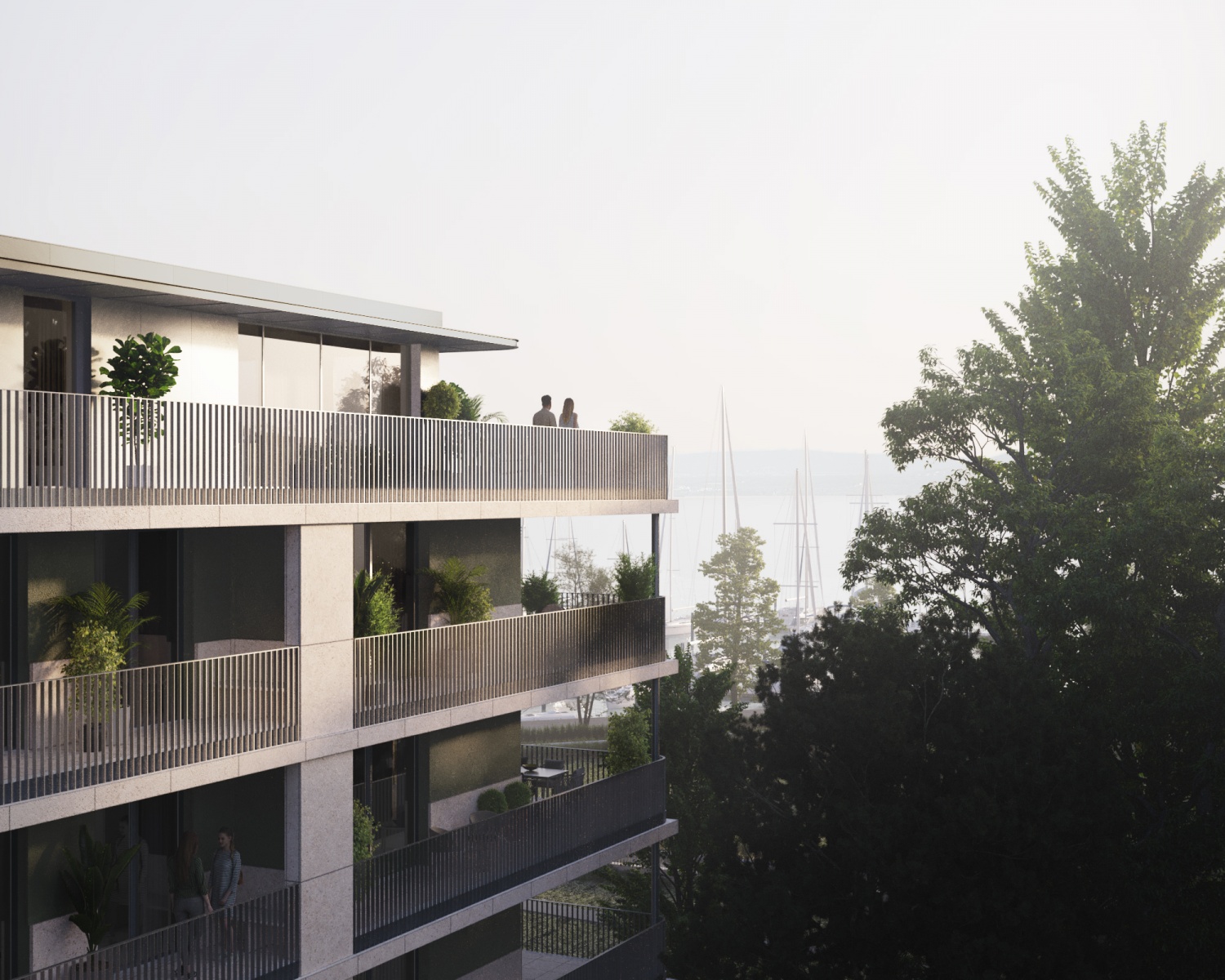A Marina 57 egyszerre modern és időtálló – a Balaton-parti környezet inspirálta, mégis innovatív megoldásokban gazdag. A mészkő homlokzat a helyi építészeti hagyományok előtt tiszteleg, míg a modern részletek – mint a szálcsiszolt alumínium burkolat – kortárs eleganciát kölcsönöznek az épületnek. A körbefutó teraszok természetes árnyékolást biztosítanak, a geotermikus rendszer pedig hatékony módon gondoskodik a lakások kellemes hőmérsékletéről minden évszakban.