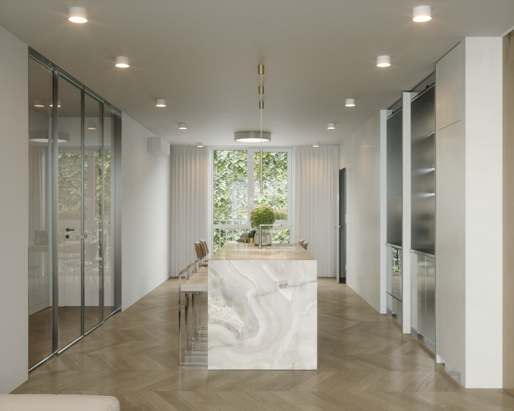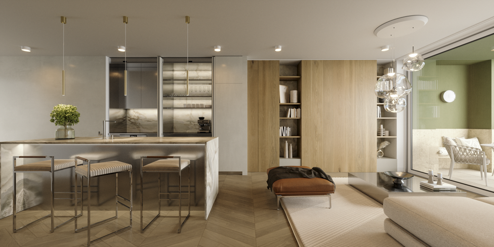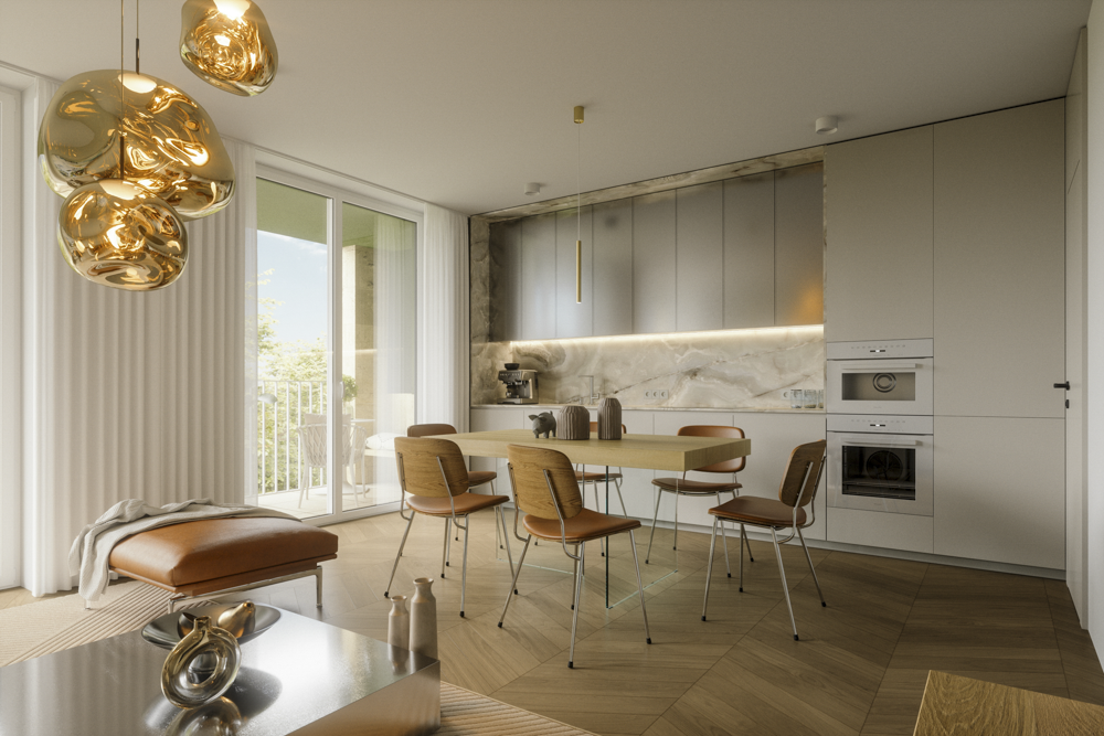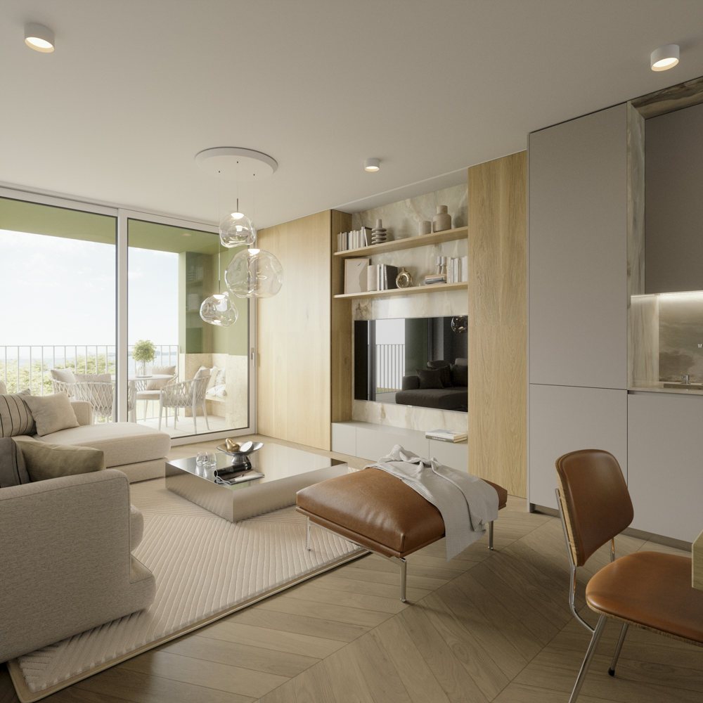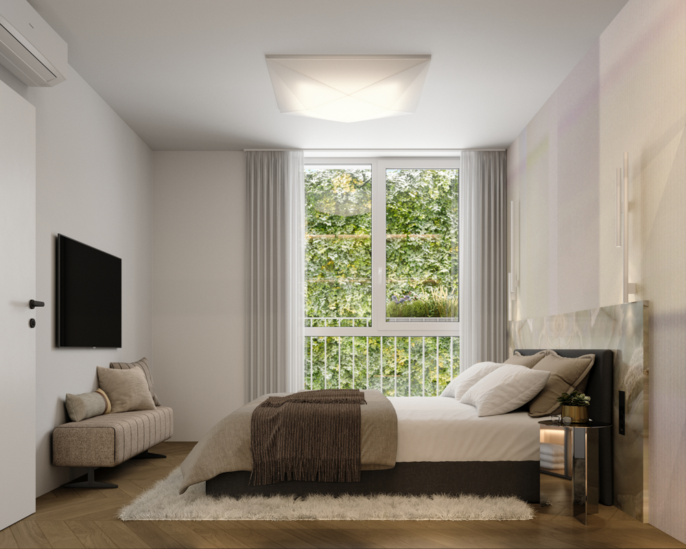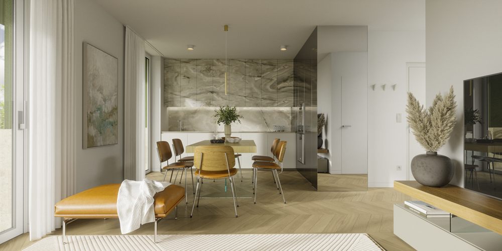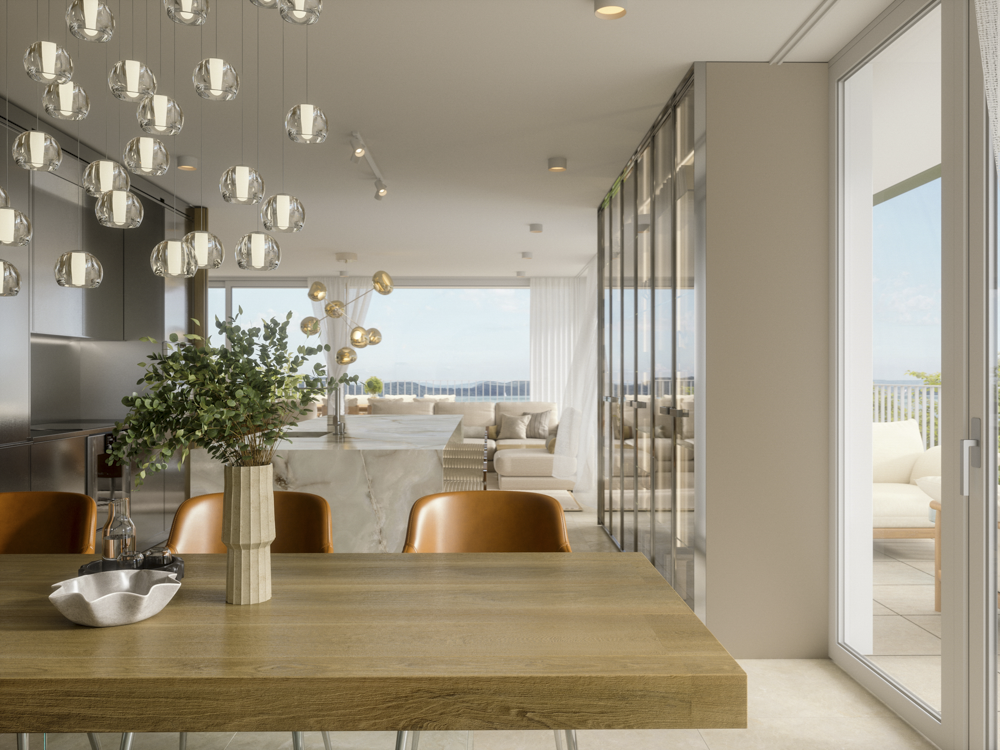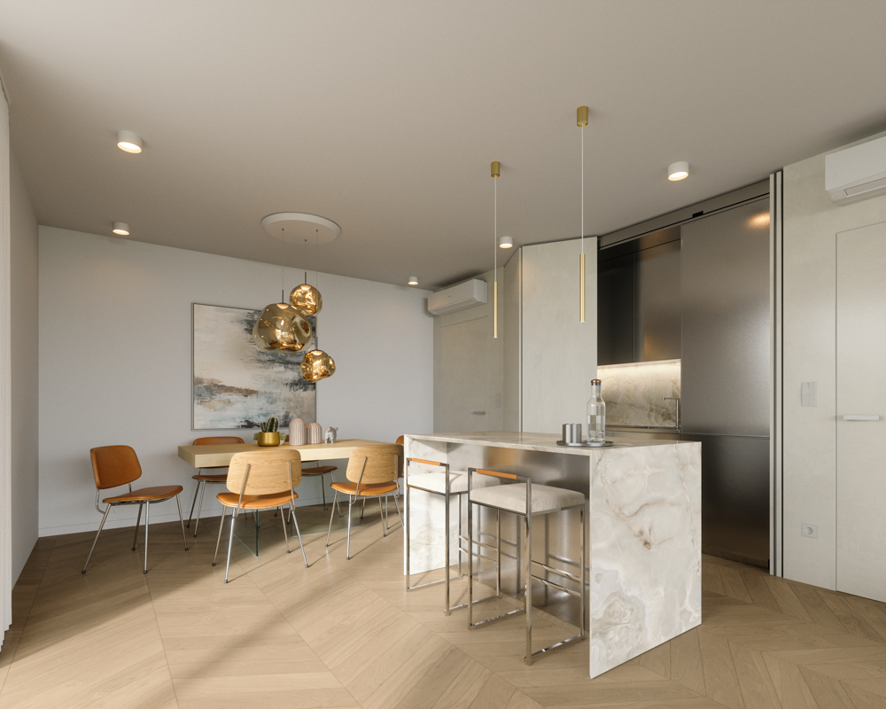 A „K” típusú penthouse lakások lenyűgöző panorámája és tágas terei otthonos, exkluzív életteret biztosítanak pároknak és családoknak.