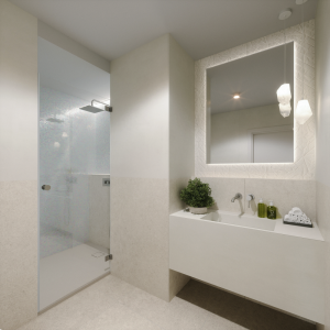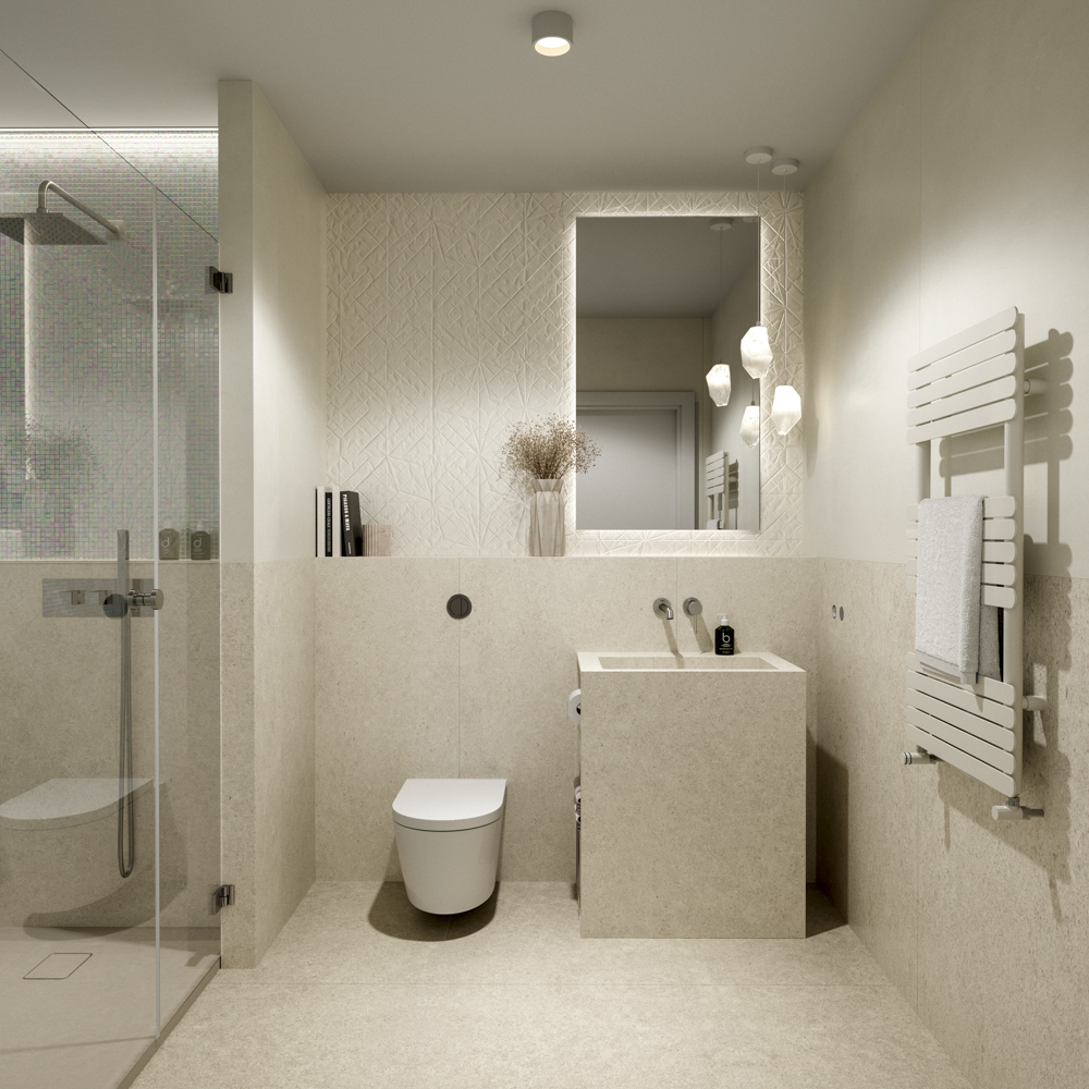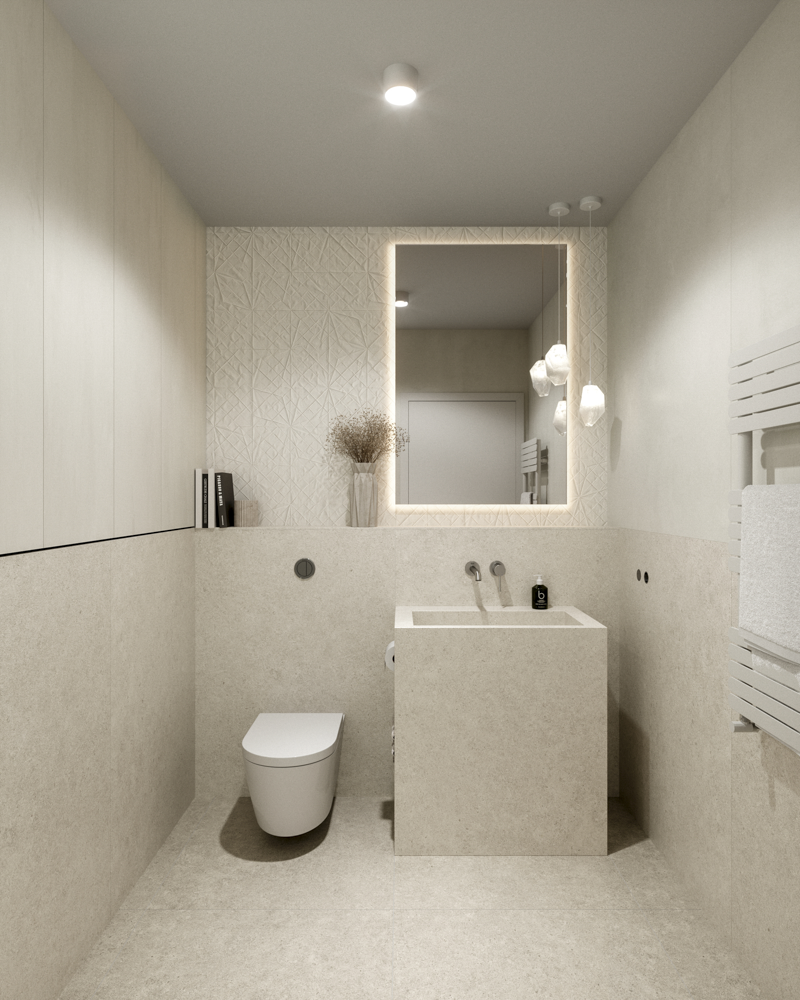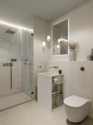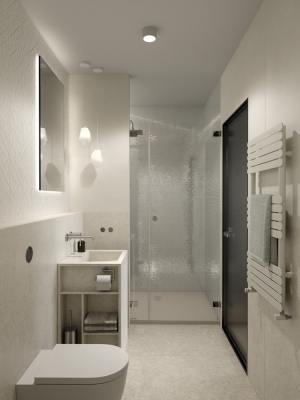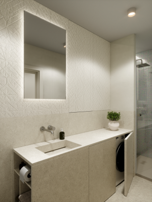 • Tágas, rejtett kialakítású beépített szekrény a fürdőszobában