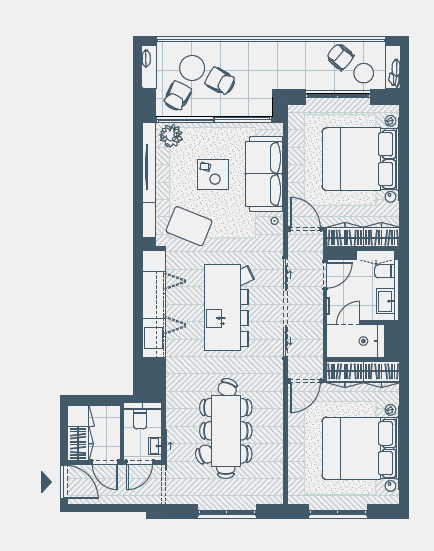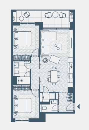 Az „F” típusú lakások sarokelhelyezkedésükkel és nagy teraszukkal tágas és világos életteret biztosítanak.