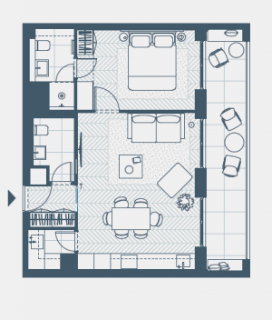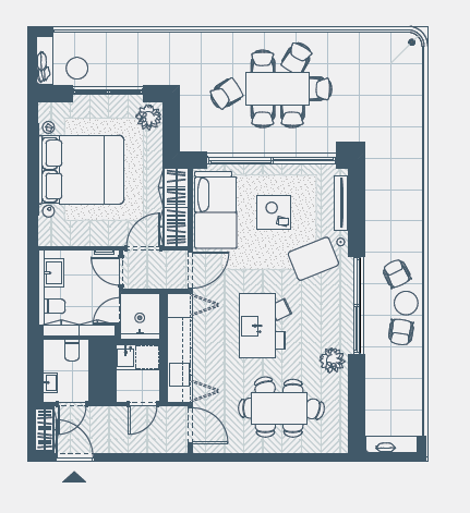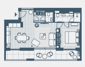 „D” típusú lakások egyedi sarokelhelyezkedésükkel és nagy teraszukkal egyedülállóknak és pároknak nyújtanak komfortos és praktikus életteret.