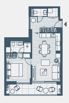 • Hálószobához tartozó gardróbszoba, onnan nyíló fürdőszobával