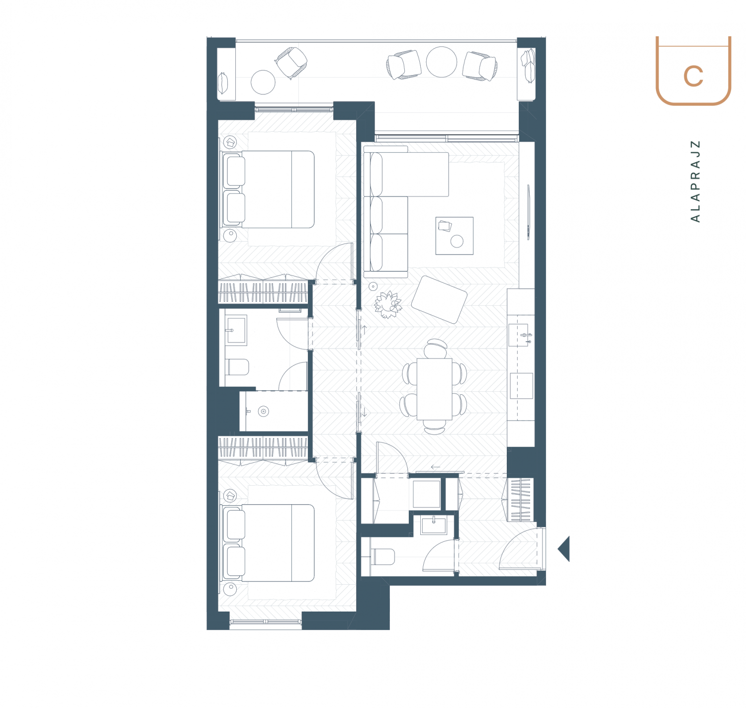 A „C” típusú lakások jól kihasznált terekből állnak, két szobával és balatoni kilátással, otthonos életteret biztosítva párok és kisebb családok számára.