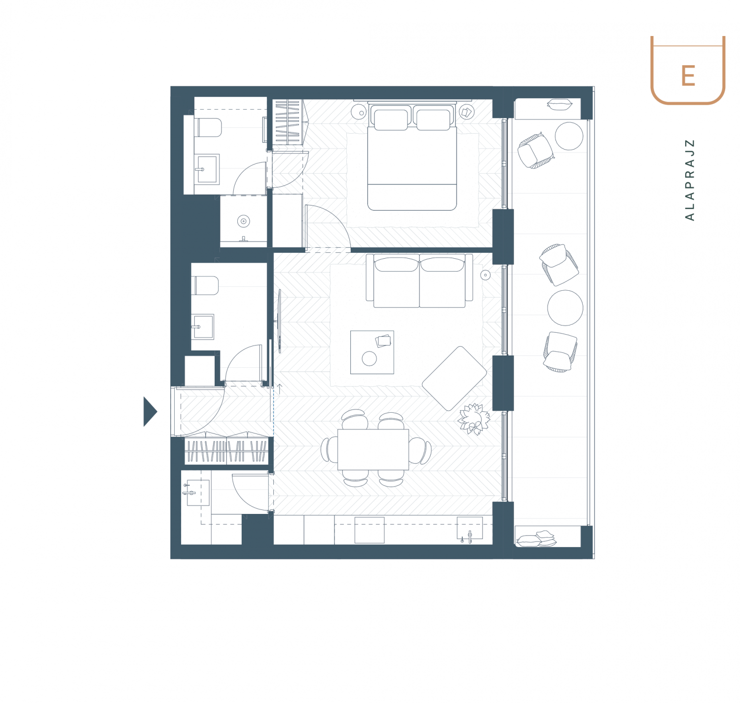 Az „E” típusú lakások ideálisak egyedülállók és párok számára, akik akik praktikus és napfényes élettérre vágynak..