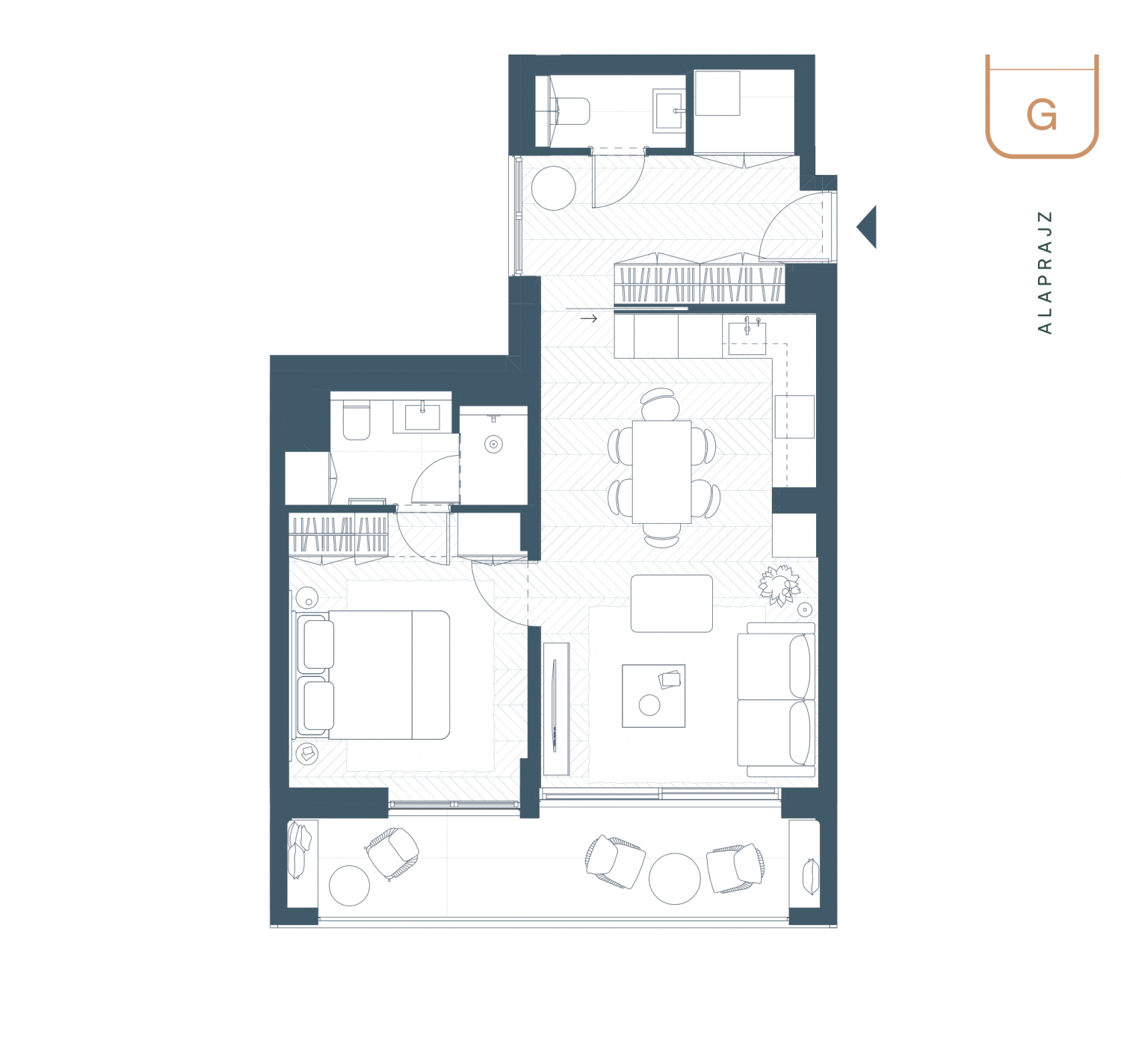 A „G” típusú lakások jól átgondolt, praktikus megoldásokkal készültek, egyéni használatra tervezve..