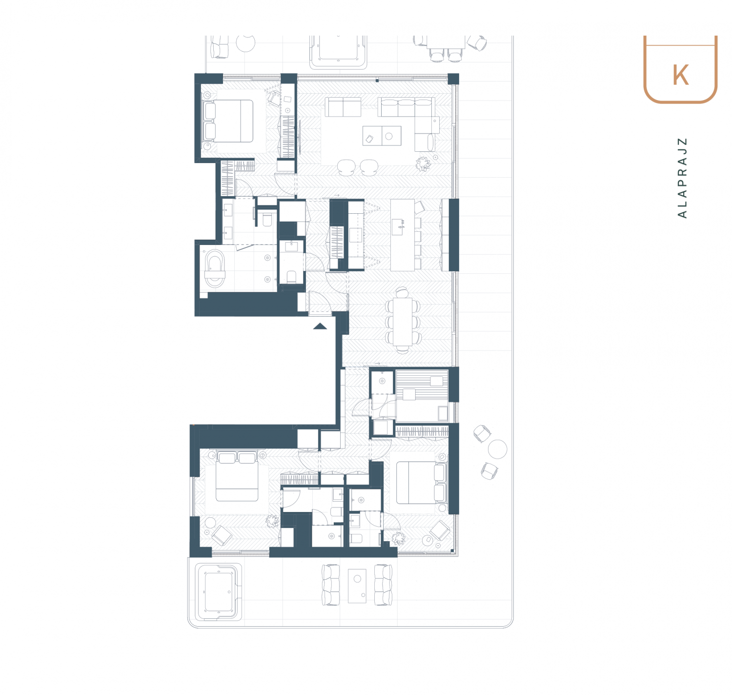 • Master lakosztály walk-in gardróbbal és tágas fürdőszobával